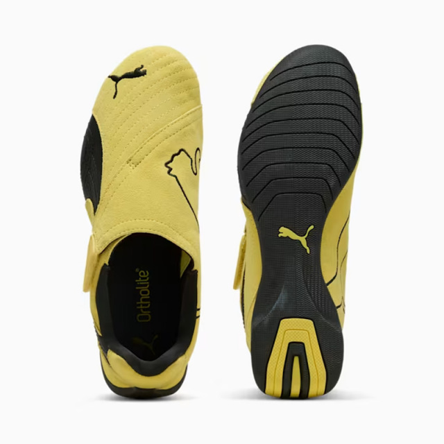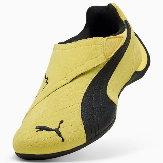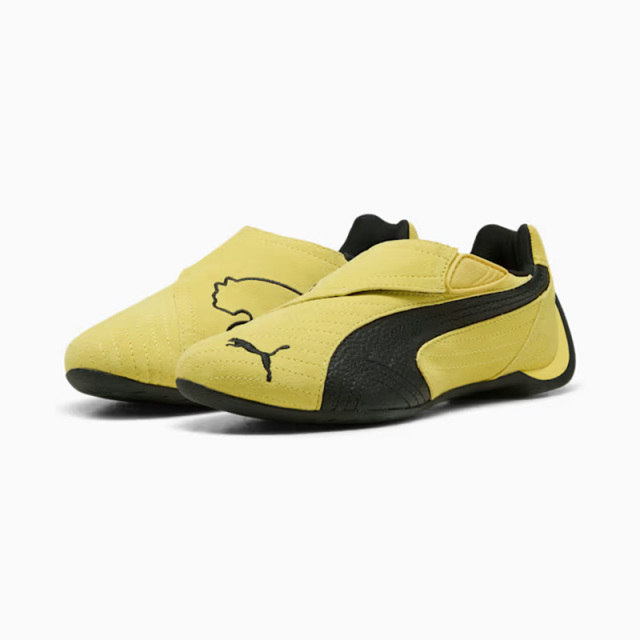 甲部分には大胆なプーマキャットロゴを配したベルクロストラップを採用し、着脱のしやすさとデザイン性を両立しています。